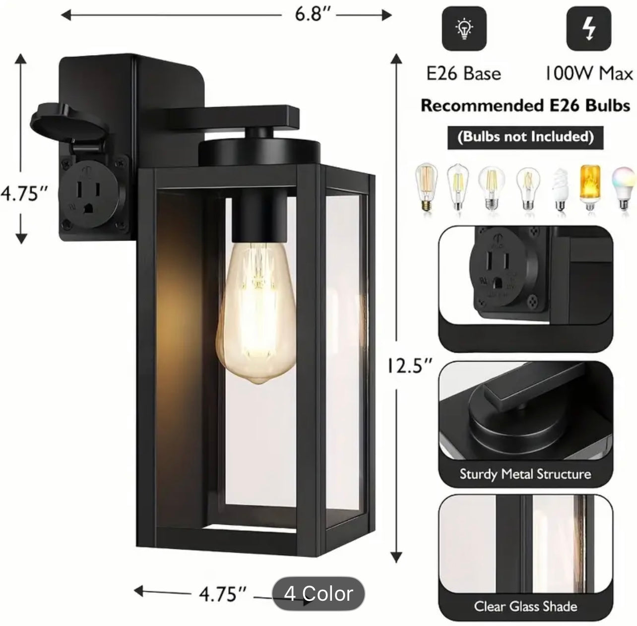 Modern Outdoor Wall Lights Exterior Lighting Fixtures, Outdoor Wall Sconces Outside Lights for House Front Door Garage, Black