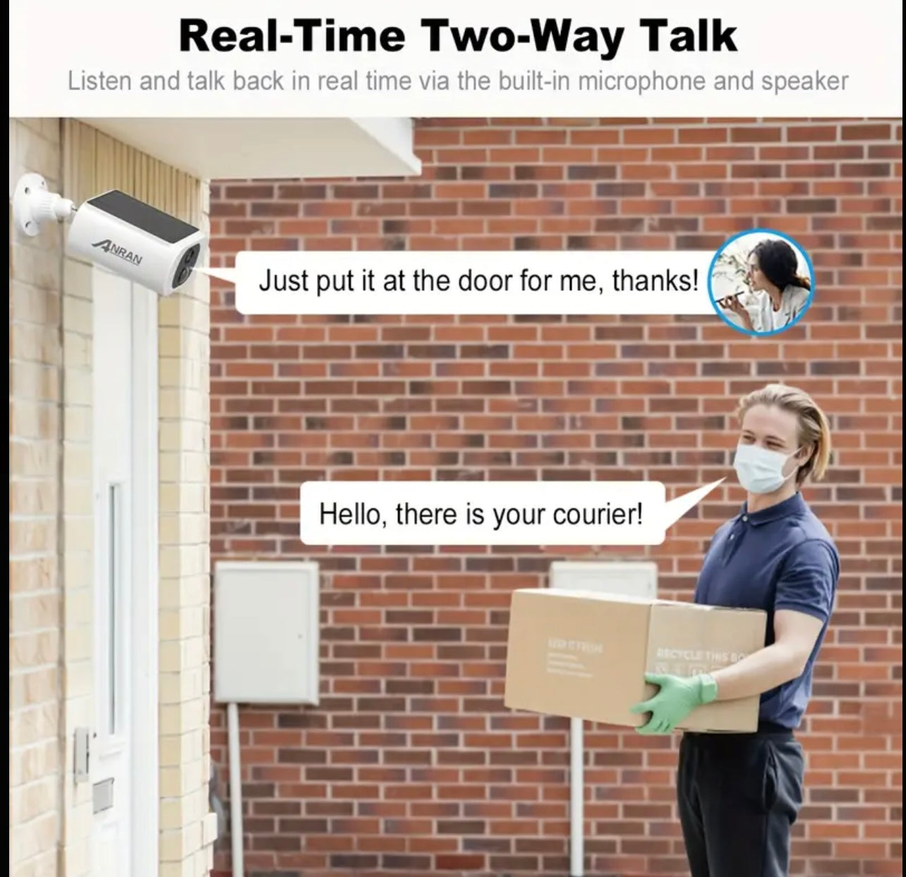 ANRAN - Solar-Powered Security Camera with Full-Color Night Vision, Motion Detection, Two-Way Audio, Alexa Compatible, Easy DIY Installation for Home & Outdoor, 1pc